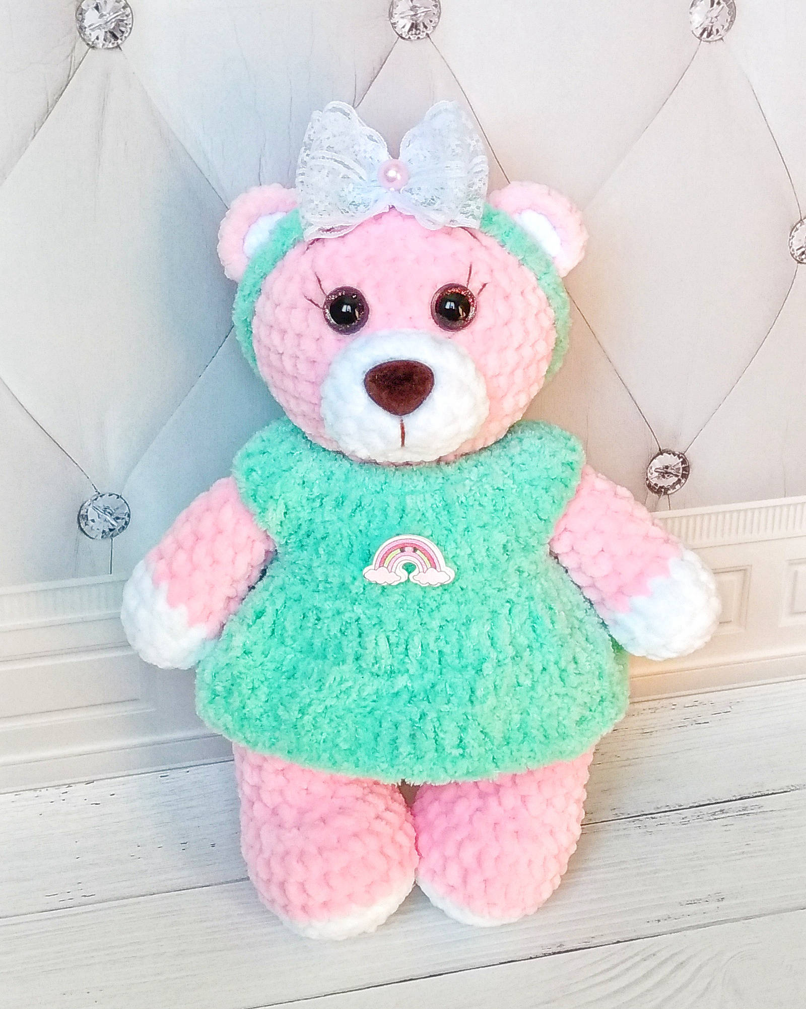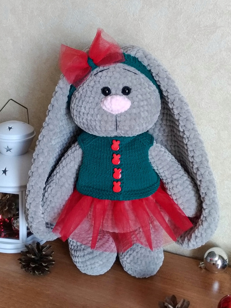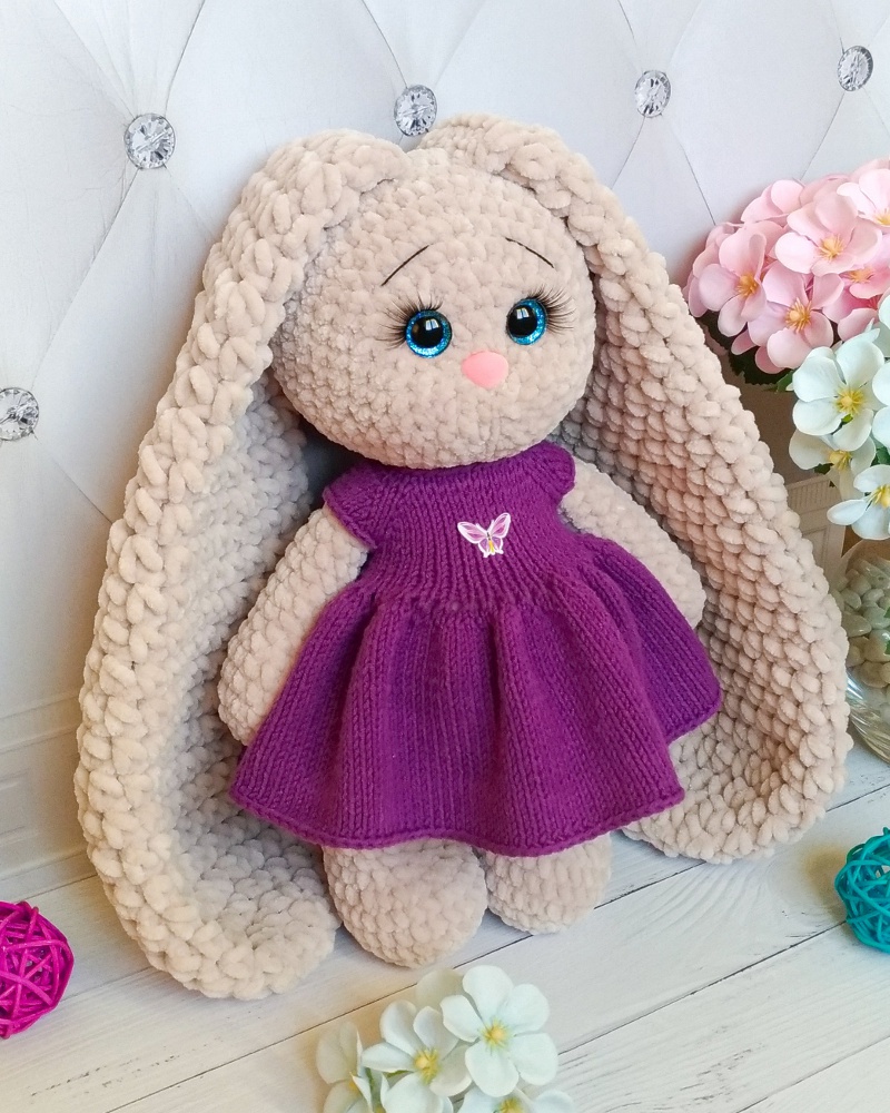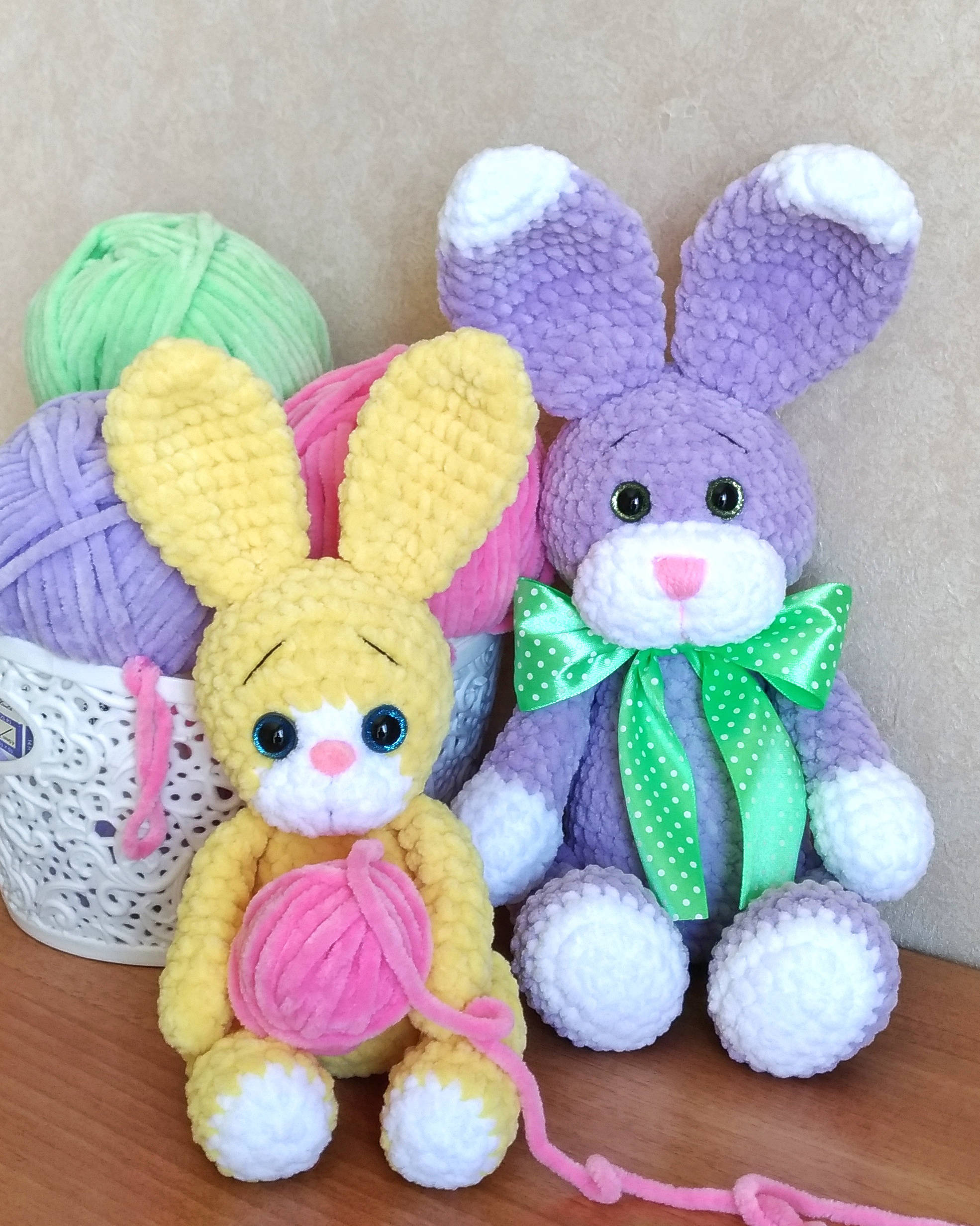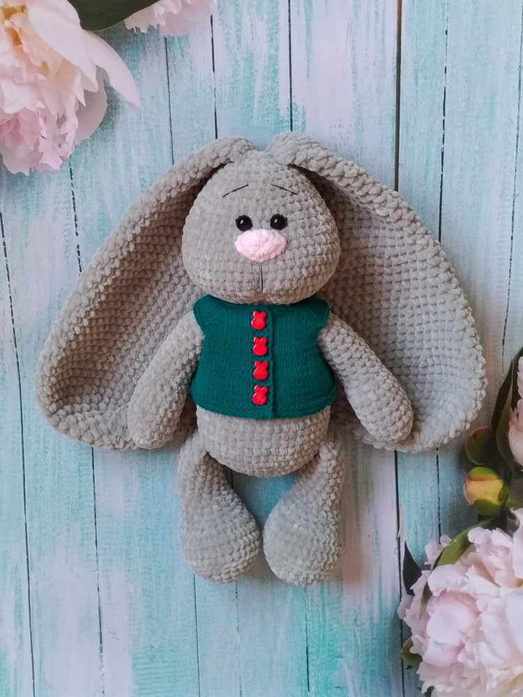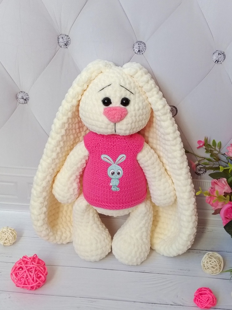 Выполнен из нежнейшей велюровой пряжи Wolans Bunny Baby.